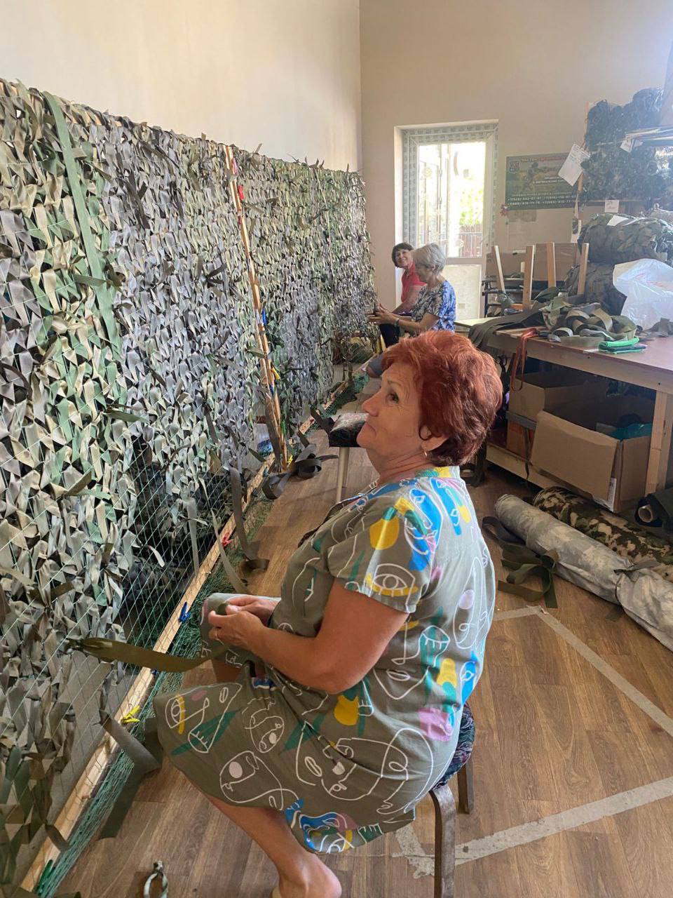 Посетители центра объединяются ради важного дела: вяжем маскировочные сети, шьём маскировочные плащи, антидроновые одеяла, подушки и многое другое, что помогает нашим защитникам на передовой.